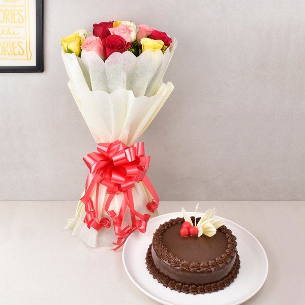 The beauty of a flower illuminates the space you are in. A nice mixture of red, yellow, white, and pink roses would emit out the most promising ray of love. So, get this flower set for your love and make him/her happy. A chocolate cake is also added to narrate your feelings in words.